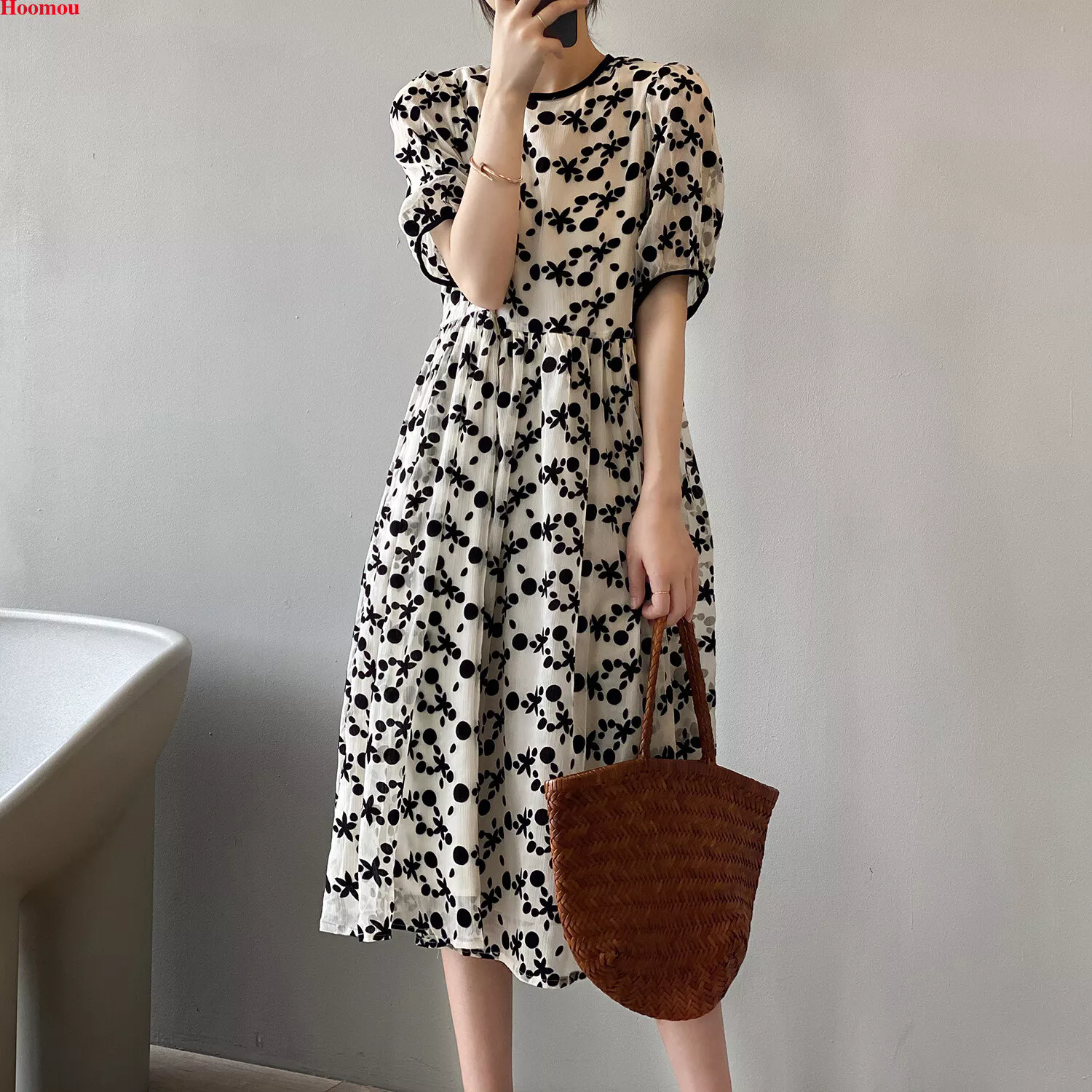 Korean Women Floral Layered Loose Casual Summer Beach Pleated Boho Shirt Dress